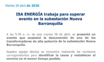 A las 5:35 a. m., se registró un evento técnico que ocasionó la desconexión de uno de los transformadores de alta potencia de la subestación Nueva...