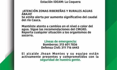 La alcaldía de Caucasia, Antioquia, reiteró el llamado de alerta a las comunidades ribereñas y rurales, aguas abajo, de este municipio por el incremento del caudal...